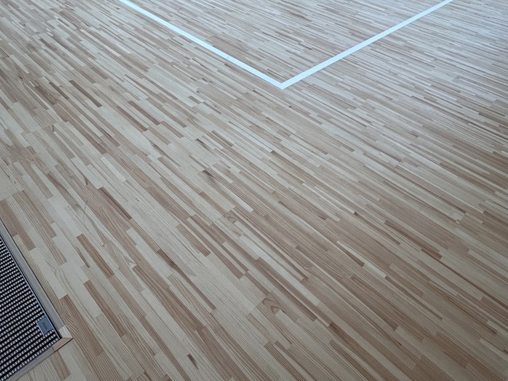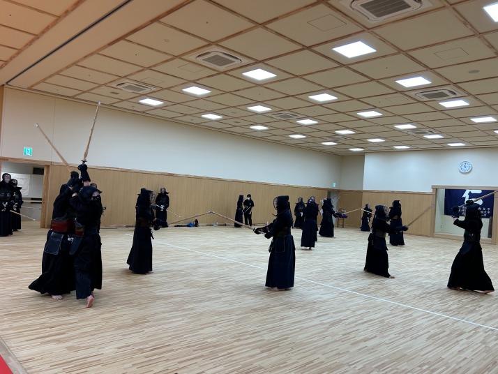2023年10月から「学園創立百周年記念館」地下2階にある新しい剣道場で、日々の鍛錬を積んでおります。足の負担を考慮し、床は杉の無垢材を使用しております。