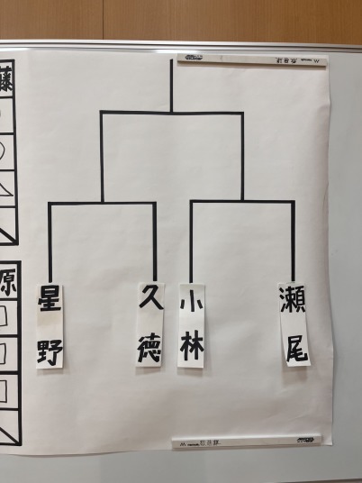 年末の恒例行事である、北澤杯を12月10日に開催しました。今年は4年生も参加し、総勢8名で日頃の鍛錬を遺憾なく発揮した熱の入った試合となりました。